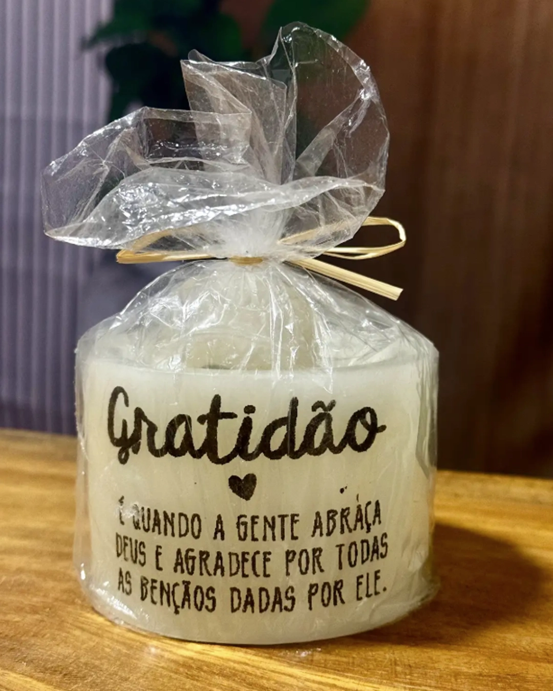 Vela em forma de luminária, a vela é oca e envolta de uma camada expessa de parafina especialmente desenvolvida para que não derreta, é composta pelos dizer: Gratidão, sendo impressos em papel especial para ser inserido em meio a parafina, *não sendo plástico ou adesivo, aroma alecrim. Para acender é composta de uma mini vela de 2cm de altura com aproximadamente 3 horas de queima. Acompanha acendedor a gás.