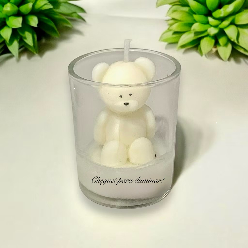 Vela Ursinho carinhoso em mini pote de vidro, o urso é em forma de vela sendo composta por parafina de soja, cores a escolher: rosa, azul ou branco. Com aroma bebê, sendo muito utilizada para decorar ambientes e também para serem presentear sendo lembrancinhas de festas como chá de fraldas, presentes para dindos, chá revelação entre outros.