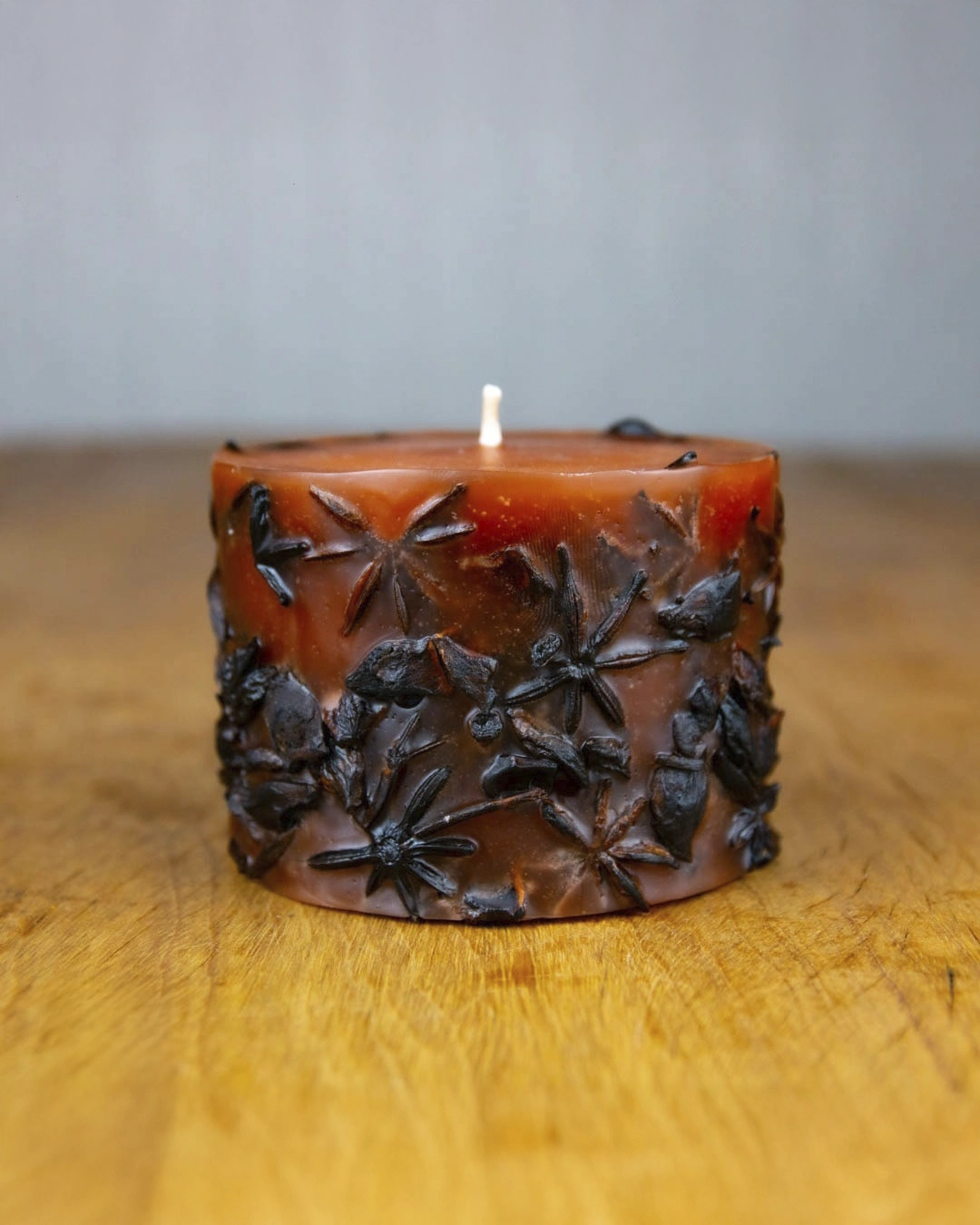 Vela exclusiva feita a mão e com ingredientes de especiarias e esta contém Anis Estrelado, com aroma de Anis. Está vela é desenvolvida especialemente com parafina mais dura que no decorrer do uso não desintegra ou derreta seus ingredientes que estão no exterior imersos na vela, formando assim uma queima no meio da vela e após sua queima continua sendo um artigo de decoração e mesmo assim exalando seu aroma no ambiente e sue beleza é claro!