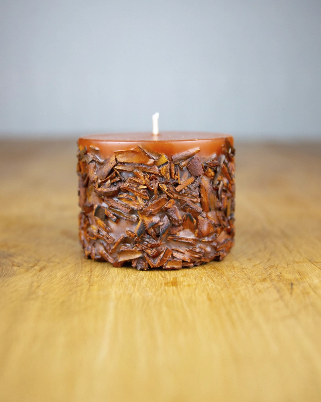 Vela exclusiva feita a mão e com ingredientes de especiarias e esta contém canela quebrada, com aroma de canela. Está vela é desenvolvida especialemente com parafina mais dura que no decorrer do uso não desintegra ou derreta seus ingredientes que estão no exterior imersos na vela, formando assim uma queima no meio da vela e após sua queima continua sendo um artigo de decoração e mesmo assim exalando seu aroma no ambiente e sue beleza é claro!