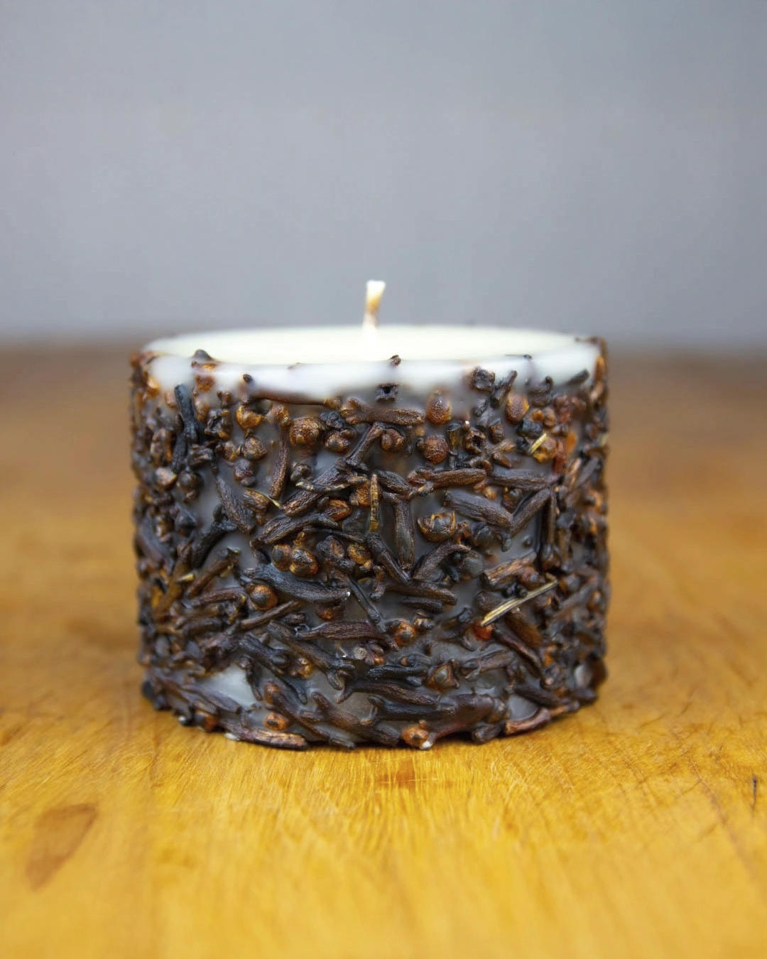 Vela exclusiva feita a mão e com ingredientes de especiarias e esta contém cravo, com aroma de cravo. Está vela é desenvolvida especialemente com parafina mais dura que no decorrer do uso não desintegra ou derreta seus ingredientes que estão no exterior imersos na vela, formando assim uma queima no meio da vela e após sua queima continua sendo um artigo de decoração e mesmo assim exalando seu aroma no ambiente e sue beleza é claro!