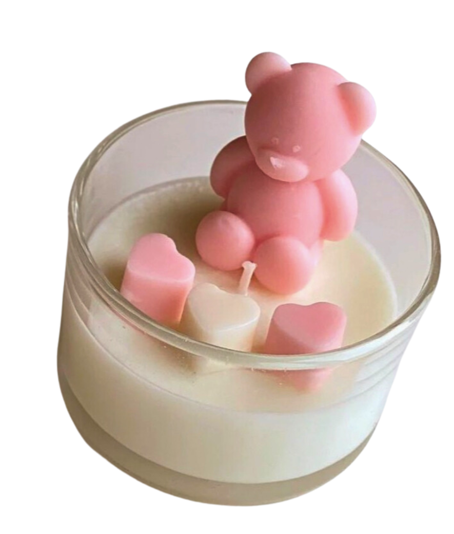 Vela Ursinho carinhoso em pote de vidro, o urso é em forma de vela sendo composta por parafina de soja, cores a escolher: rosa, azul ou branco. Com aroma bebê, sendo muito utilizada para decorar ambientes e tambem para serem presentear sendo lembrancinhas de festas como chá de fraldas, presentes para dindos, chá revelação entre outros.